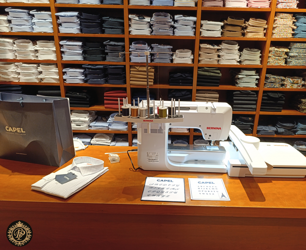 CAPEL Paris ouvre les portes de la personnalisation haut de gamme avec une animation de broderie machine dédiée au monogramme sur chemise. Au cœur de la boutique, la broderie devient un geste de distinction : précis, maîtrisé, durable.